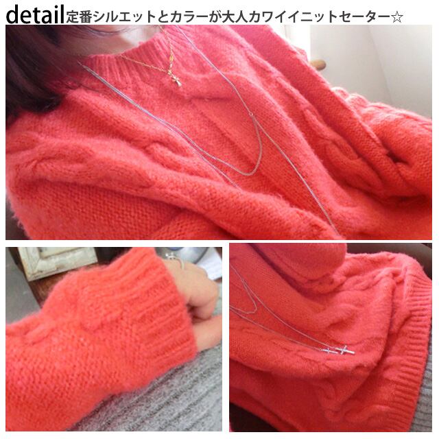 ケーブル編みニット【即納】トップス ニット あぜ編み セーター 長袖 チュニック