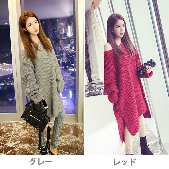 ローゲージ ロングニット【即納】ニットワンピース ワンピース ざっくり ゆったり