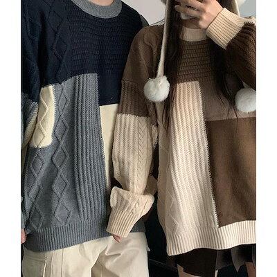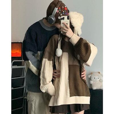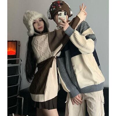 セーター ペアルック メンズ レディース ニット ベージュ グレー 秋冬 カップル 恋人 親友 友達 姉妹 韓国 可愛い 暖かい トップス 旅行 S M L XL 2XL 3XL