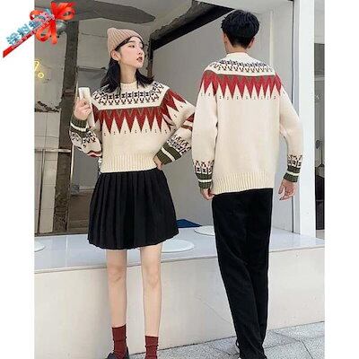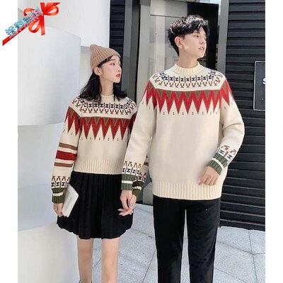 セーター ペアルック メンズ レディース Merry Christmas お祝い プレゼント クリスマス セーター ニット ゆったり ベージュ 秋冬 カップル 恋人 親友 友達 韓国