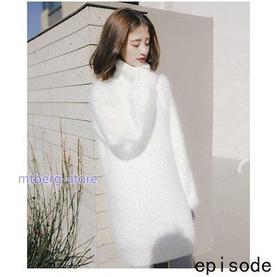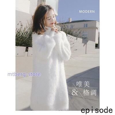 ニットワンピース レディース ミンクカシミアトップス 秋冬 モヘアセーター 長袖ハイネック 無地 ニットセーター 韓国風ワンピース 着痩せ ゆったり 2色
