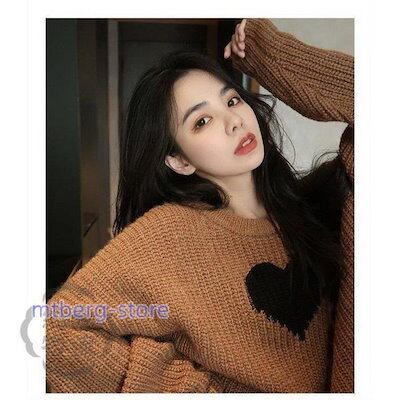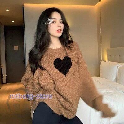ニットセーター レディース 秋冬 40代 トップス 長袖 厚手 ニットソー ハート柄 韓国風 ショート丈 ニットトップス ゆったり セーター 大人可愛い 韓国風 通勤