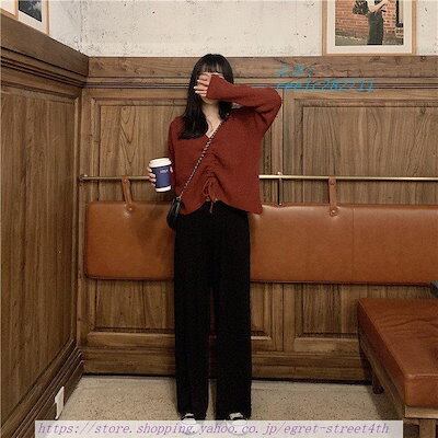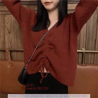 ニット レディース 秋 冬 トップス 長袖 カットソー おしゃれ Vネック 40代 無地 30代 韓国風 50代 リボン付き セーター セーター ゆったり 着痩せ
