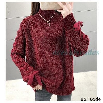 新品掲載!ニットセーター レディース 秋冬 長袖ハイネック シェニール リボン メリヤス トップス コート 着痩せ 上質 厚手 30代 40代 50代ゆったり 韓国風