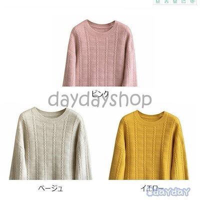 ニットセーター レディース 春秋冬 ニットソー 長袖 丸首セータートップス 丈 ニットセーター ゆったり ウールニット韓国風 大人可愛い 3色