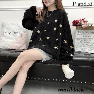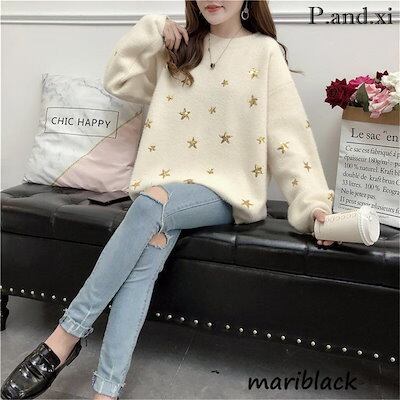 ニットトップス レディース 秋冬 40代 長袖セーター 星柄ニットセーター ニットソー もこもこ ゆったり 韓国風 オシャレニット 大人可愛い 30代