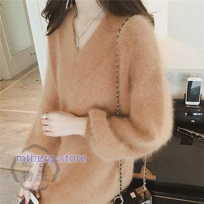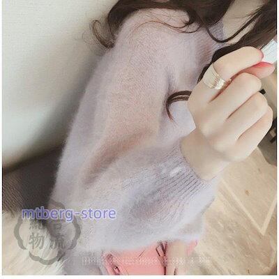 ニットセーター レディース 秋冬 長袖 パフスリーブ メリヤス トップス テンの毛 馬海毛 厚手 上品 着痩せ もこもこ ふわもこ30代 40代 50代ゆったり 韓国風