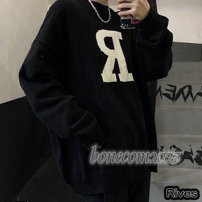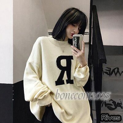 レディース ニット メンズ 古着 長袖 秋冬 オーバーサイズ ロング丈 白 韓国ファッション 20代 韓国ストリート ストリート系 服 韓国