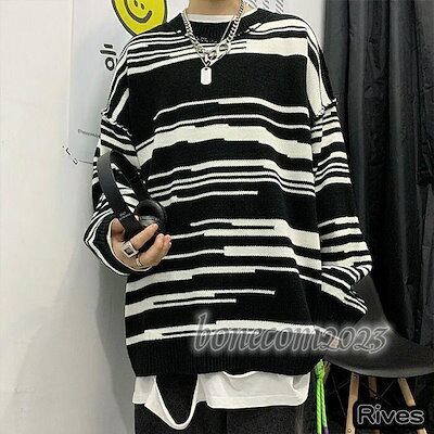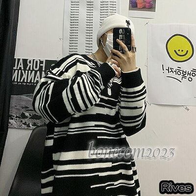 レディース ニット メンズ 黒 白 秋冬 長袖 ブラック ホワイト 韓国ファッション 20代 ゼブラ柄アニマル柄 韓国ストリート ストリート系