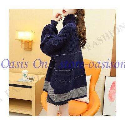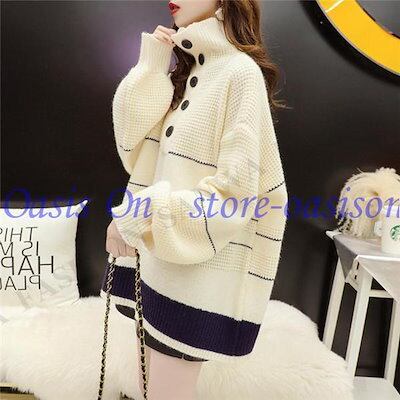 ニットセーター レディース 秋冬 40代 トップス 長袖 厚手 ニットソー 配色 ハイネック 韓国風 大きいサイズ トップス ゆったり セーター 通勤 着痩せ