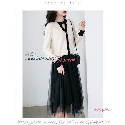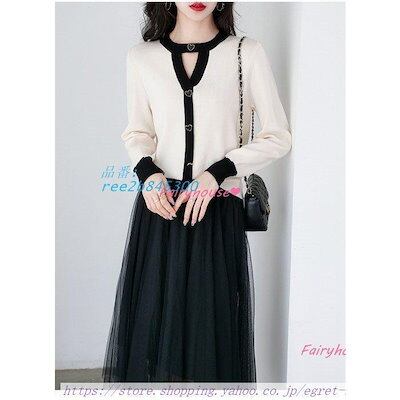 ニットセットアップ レディース 秋冬新作 ニット上下セット 長袖ニットトップス チュールスカートニットセットアップ 韓国風 オシャレ大人 着痩せ 上品 通勤