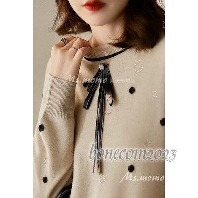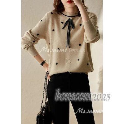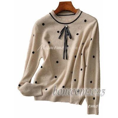 ニットセーターレディース秋冬新作 長袖ニットトップス クルーネック ドット柄 ゆったりプルオーバーニットインナー オシャレ30代30代韓国風 着痩せ