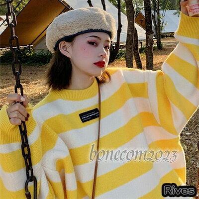 ボーダー ニット レディース オーバーサイズ 古着 長袖 秋冬 韓流 韓国ファッション 20代 韓国ストリート ストリート系 服 韓国 ファ