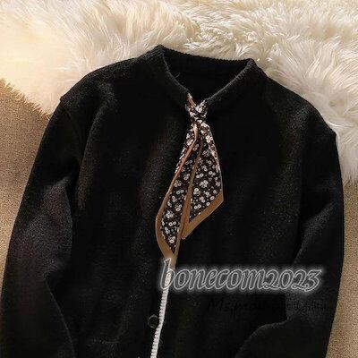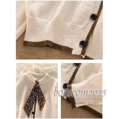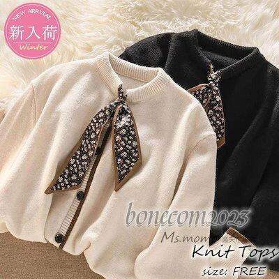 ニットトップス レディース 秋冬30代長袖セーター プリントリボンネック 丈セーター ゆったりプルオーバー オシャレ韓国風 大人ニットインナー