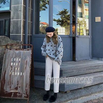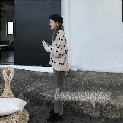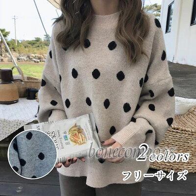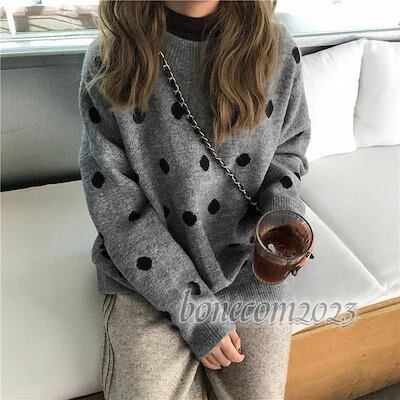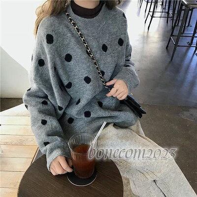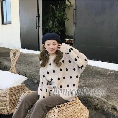 ニットセーター レディース 丸首 ニットソー 着痩せ 無地 ニットトップス 秋冬 プルオーバー ニット カットソー 韓国風 ドット柄 水玉 おしゃれ きれいめ 30代