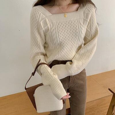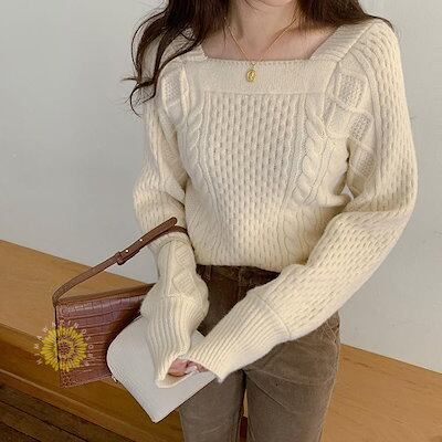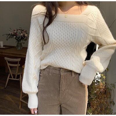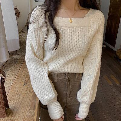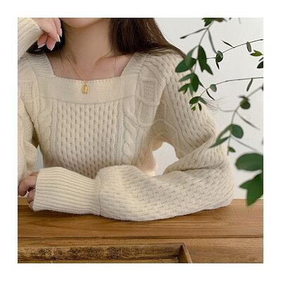 ニットセーター レディース 春秋冬 ニットソー 長袖 スクエアネックセータートップス 丈 ニットセーター ゆったり ニット 韓国風 大人可愛い 着痩せ
