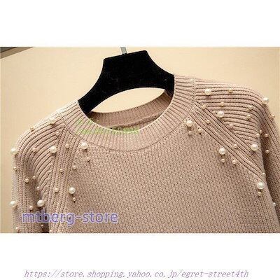 ニットセーター レディース 40代 秋冬 ニットソー 長袖 トップス通勤 韓国風 ニットセーター オシャレ 着痩せ ニットセーター 暖かい 丸首 ビーズつき