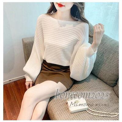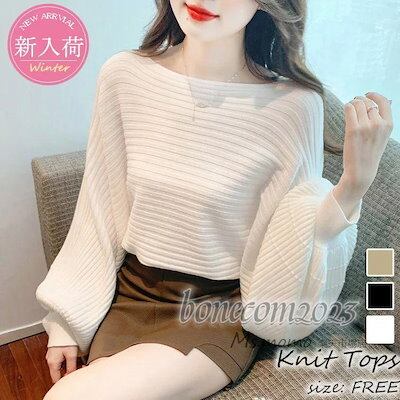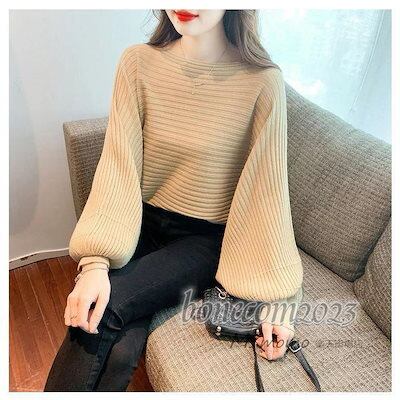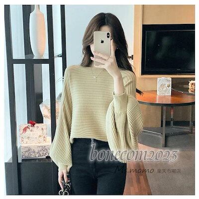 ニットトップス レディース 秋冬30代長袖セーター パフスリーブ 丈セーター ゆったりプルオーバー オシャレ韓国風 大人ニットインナー