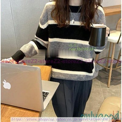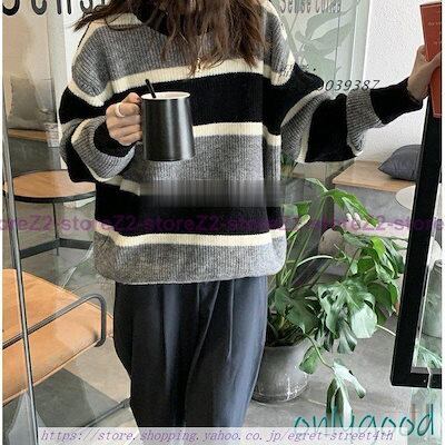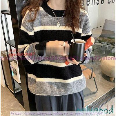 ニットトップス レディース 秋冬 40代 長袖 ニットトップス ボーダー柄セーター 50.代 30代 オシャレ秋服 丈ニットソー ゆったりプルオーバー 韓国風