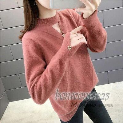 ニットトップス レディース 秋冬30代長袖セーター無地 ハイネック フェイクミンクカシミア 丈セーター ゆったりプルオーバー オシャレ韓国風 大人ニッ