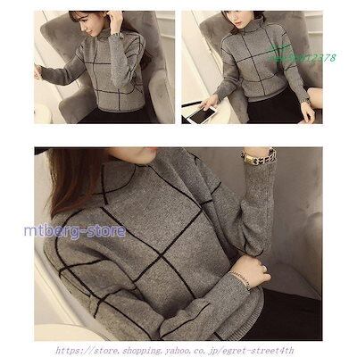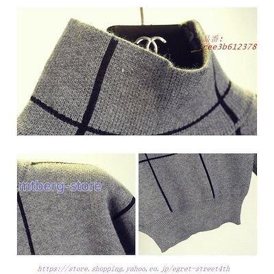 ニットセーター レディース 40代 秋冬 ニットソー チェック柄 着痩せ 3色 通勤 ハイネック 韓国風 ニットセーター 暖かい 長袖 トップス ニットセーター