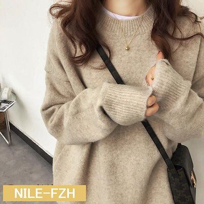 ニットセーター レディース ニット 長袖 秋冬 リブ ハイネック Tシャツ インナー セーター トップス ゆったり 韓国風 体型カバー きれいめ