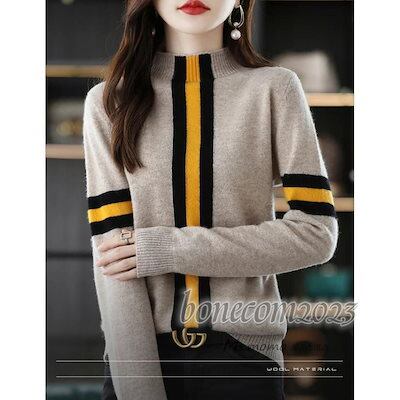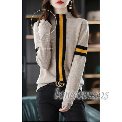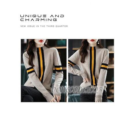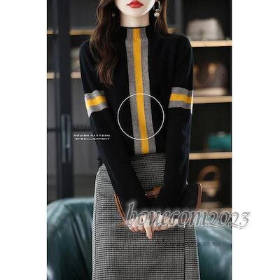 ニットトップス レディース 秋冬30代長袖セーター 配色ボーダー 丈セーター ゆったりプルオーバー オシャレ韓国風 大人ニットインナー
