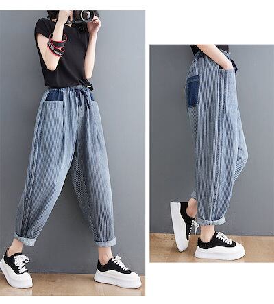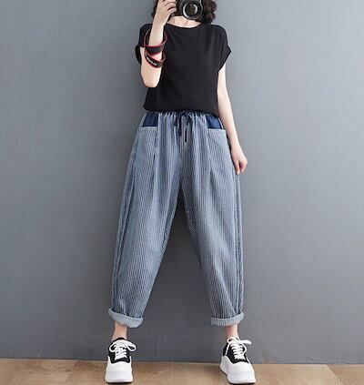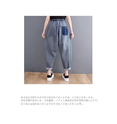 ポケット ライン かわいい 大人 デニムパンツ コクーン デニム 低身長 レディース 大きいサイズ ワイドパンツ 丸い ウェストゴム バルーンパンツ 九分丈 クロップド 着痩せ バルーンシルエット ゆ