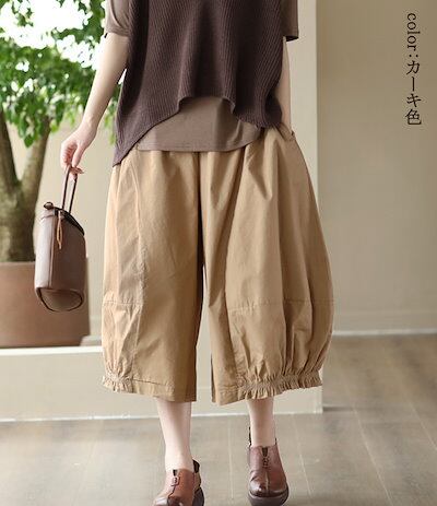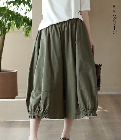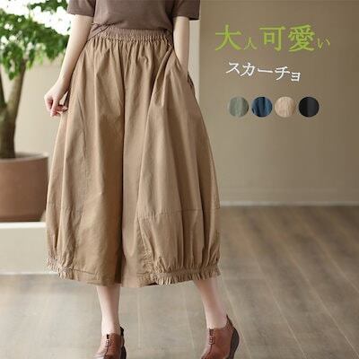 スカーチョ ワイドパンツ バルーンパンツ コットン ロングパンツ 無地 きれいめ 綿 リネン スカンツ 大きいサイズ カジュアル風 ハイウエスト 春夏 レディース 春 ロングパンツ ガウチョパンツ ゆ
