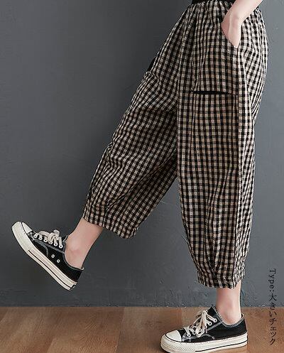 部屋着 コクーン 柄 バルーン レディース サルエルパンツ 低身長 サーカスパンツ 大きいサイズ 速乾 おしゃれ ゆったり チェックパンツ 体型カバー イージーパンツ 夏 きれいめ 七分丈 ゴム パン