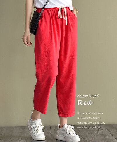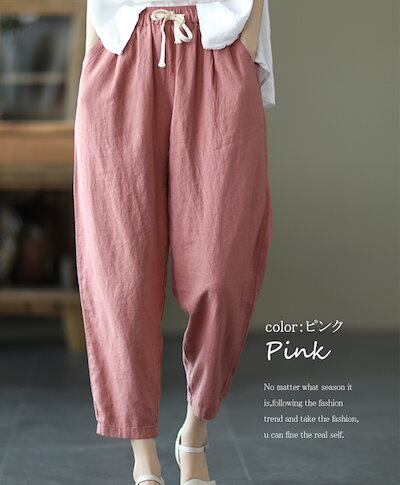 体型カバー 綿麻調 通気性 イージーパンツ ボトムス ウェスト総ゴム 着やすい テーパード テーパードパンツ アンクルパンツ カジュアル レディース 九分丈 シンプル 調整可 紐付き ゆるめ 9分丈