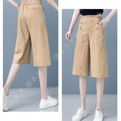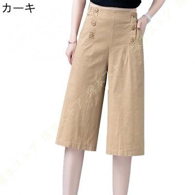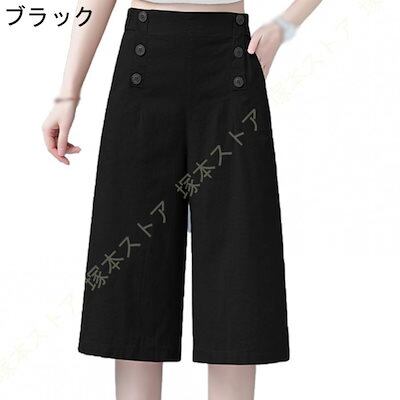 ンパンツ レディース 綿麻 ガウチョパンツ バックゴム ボ飾り 付き ワイドパンツ 春 夏 秋 無地 シン ゆったり 麻パンツ 部屋着 通勤