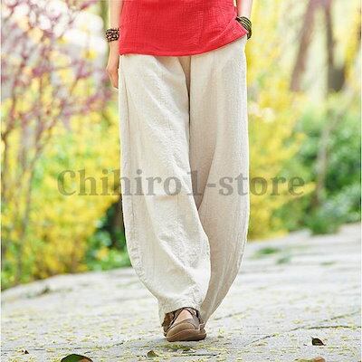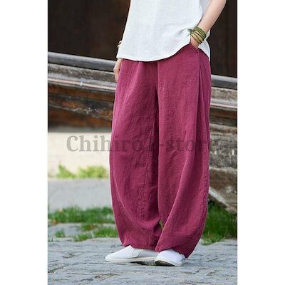リネン パンツ レディース 涼しい バルーンパンツ アンクル サルエルパンツ 綿麻 イージーパンツ リネン コットン ワイドパンツ