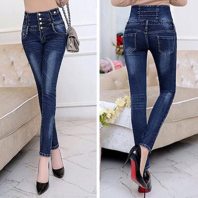 今だけ圧倒的販売 スキニーデニムパンツ レディース ハイウエスト デニムジーンズ 無地 ストレッチ ジーパン 脚長 ジーパン 細見えネコポス可