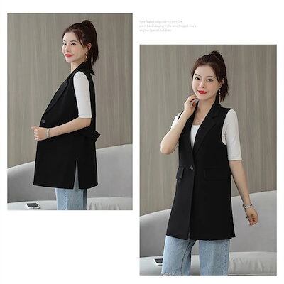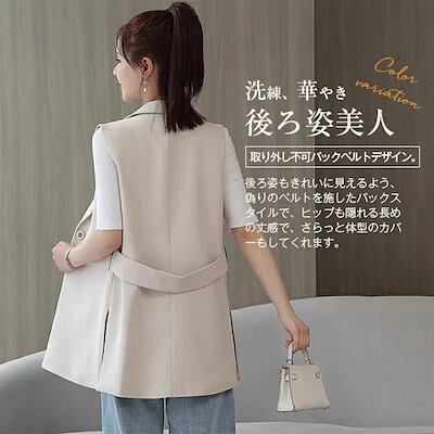 ジレ レディース フォーマル 春夏 前開き ベスト ロングベスト チュニック丈 テーラード テーラードベスト スーツベスト 羽織り ノースリーブ 大人 無地 きれいめ ビジネス 通勤 お洒落 デイリ