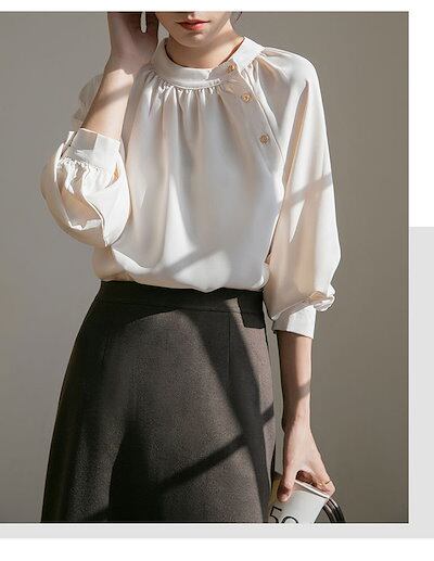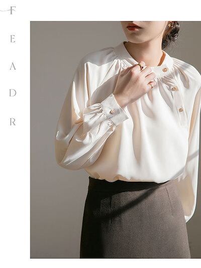 ブラウス レディース 長袖 白ブラウス 襟フリル 無地 シャツブラウス トップス スーツインナー バンドカラー お洒落 可愛い カジュアル フォーマル オフィス エレガント シンプル オフィスカジュア