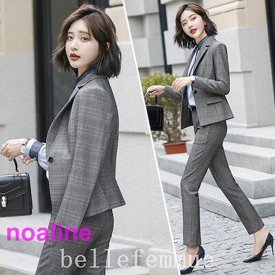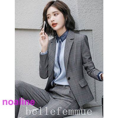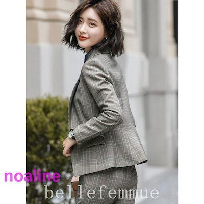 翌日出荷 セットアップスーツレディースチェック柄パンツスーツ春秋冬フォーマルスーツ通勤OLスーツオフィススーツセレモニースーツ