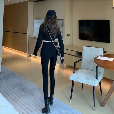 ネットレッド 春秋 新作 ハイウエストパンツ 弾力 着痩せ レギンス レディー ブラック スキニー