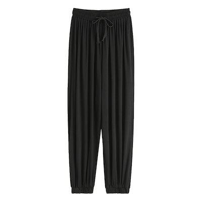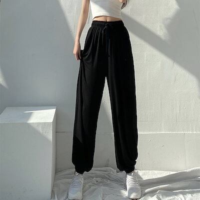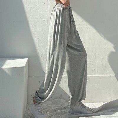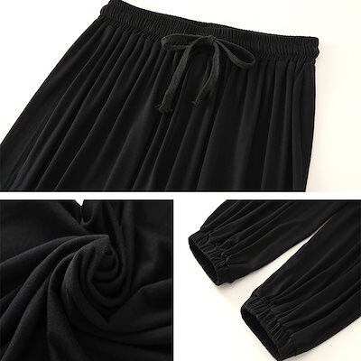 ワイドパンツ ニットパンツテーパードパンツ 着痩せ薄ジャージズボン黒とグレーの二色を選楽ちん ウエストゴムパンツ接触冷感ボトムスひんやりボトムスジョガーパンツLFZ208脚長効果!スキニーパンツ スラ