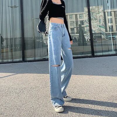 ワイドパンツ スラックスパンツ デニムパンツ ズボン ジーンズ ハイウエストデニム スキニーパンツ レディース パンツ ロングパンツ ダメージジーンズ 韓国ファッション