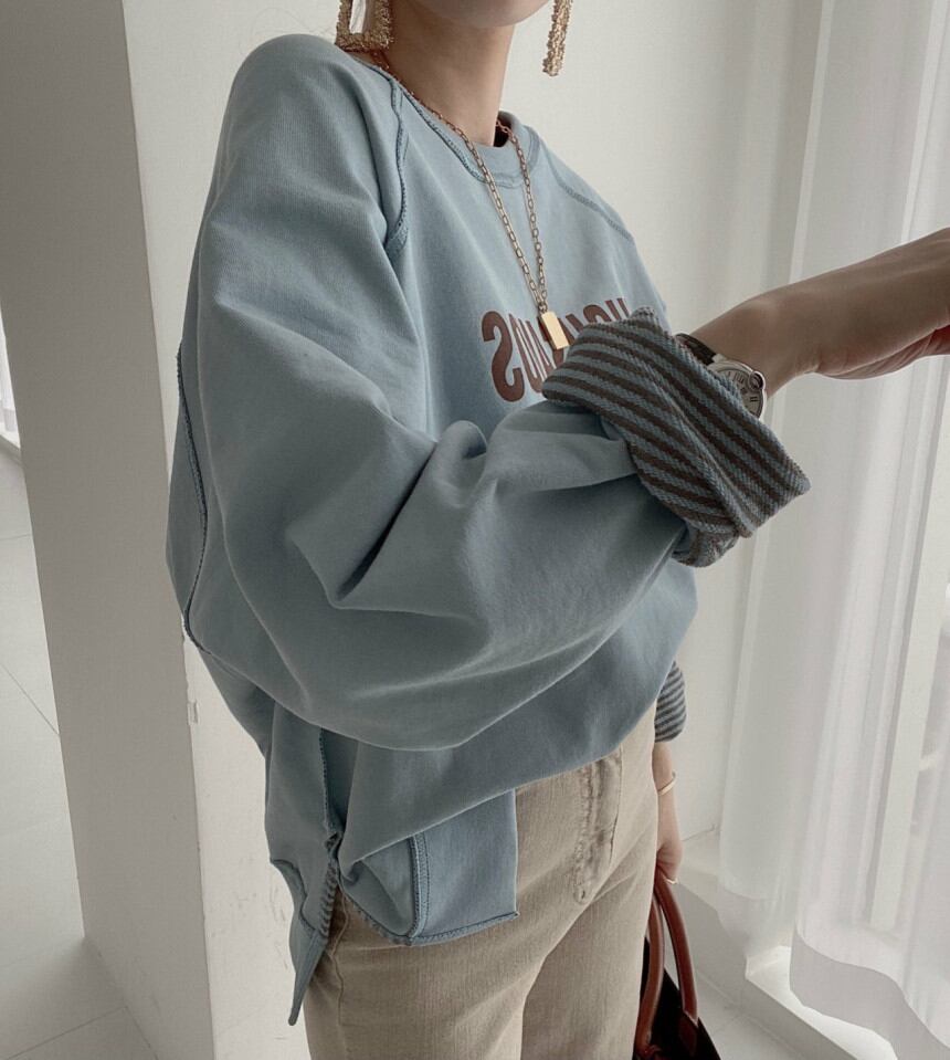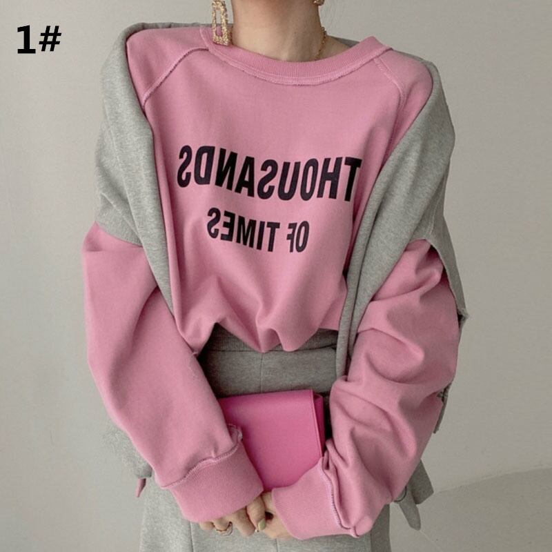 韓国風 プルオーバー トップス レディース 2024年秋冬新作 英字ロゴ ラウンドネック