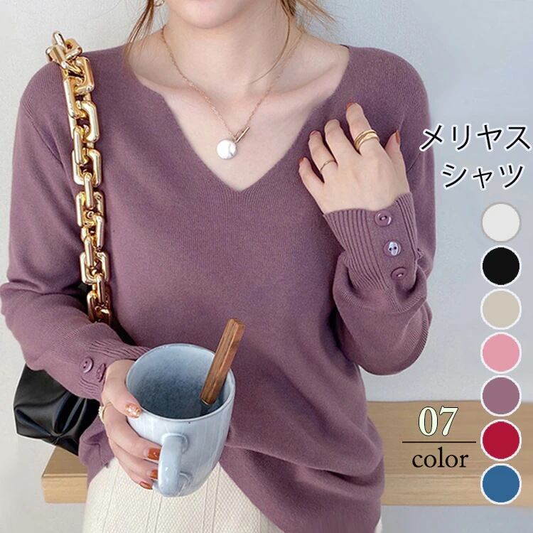 プルオーバー 2024年秋冬新作 Vネック 韓国風 ニットトップス レディース服 人気アイテム 7色