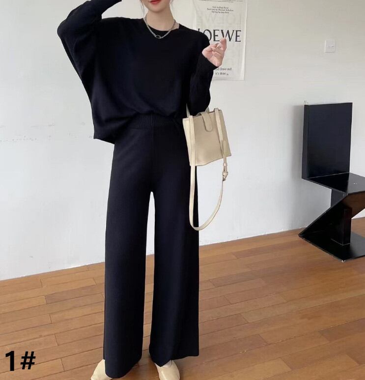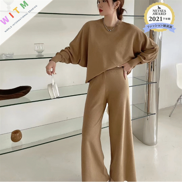 秋冬新作 ファッション ニット 2点セット ハイエンド レトロ風 ニット 厚手 トップス ワイドパンツ