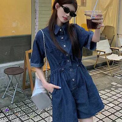 オールインワン レディース デニム オーバーオール 半袖 ショートパンツ 短パン 韓国ファッション つなぎ 可愛い カジュアル 夏服