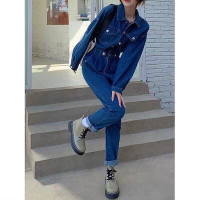 オールインワン レディース オーバーオール デニム つなぎ 作業着 長袖 サロペット ジーンズ ロングパンツ 体型カバー 着痩せ かわいい 韓国ファッション