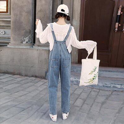 脚長 ストレート2024年春秋新作デニムオーバーオールレディース韓国バージョンルーズモリレディースオ