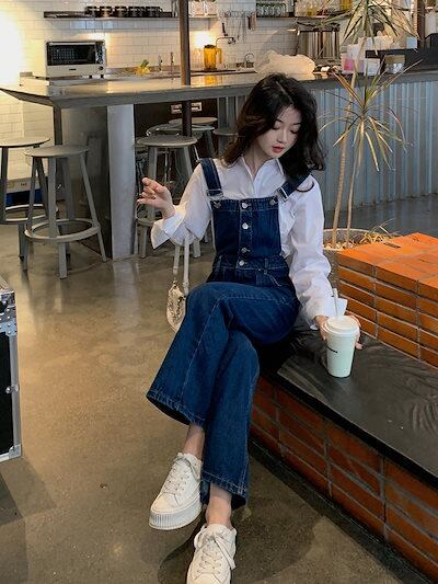 体型カバー オーバーオール小さなレトロなルーズオーバーオールレディース春韓国ハイウエストスリムス