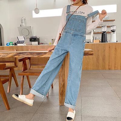 スリムフィットビッグポケット年齢を減らすデニムオーバーオールレディースルーズハイウエストワイドレッグ韓国ファッション