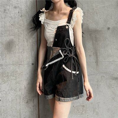 体型カバー オーバーオール2024サマーニューレースレースソルトデニムオーバーオールレディースシンハ韓国ファッション