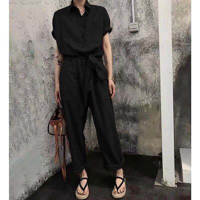 サロペット オーバーオール 脚長 ストレート パンツ レディースロング丈 ワイドパンツ 体型カバー オーバーオール 2022新作